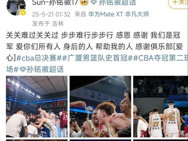孙铭徽CBA总决赛赛后夺冠后发文,几乎没人祝福,评论区满屏嘲讽,今晚直播还被喷到直接下播!
